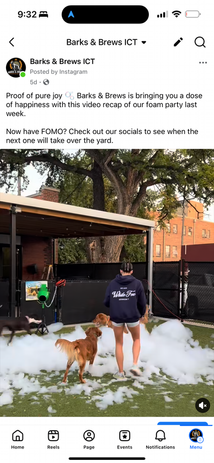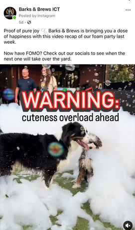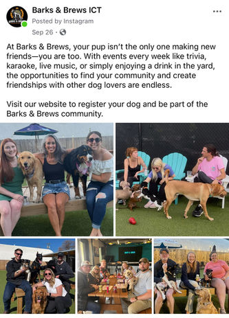 As a part-time social media specialist for a local dog park and bar, I create content for Facebook and Instagram channels including event promotions, Reels, and photos of members and events. Using these tactics, I have averaged over 43,000 monthly views year-to-date and maintained an engagement rate of 2.2%, outperforming the Facebook average benchmark of 0.15%.